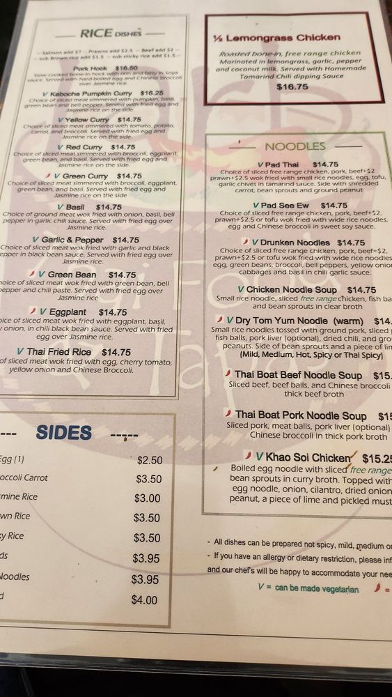 Introducing the menu at Larb Thai Food & Tapas, a trendy and casual Thai restaurant in El Cerrito, CA. This Asian-owned and women-owned establishment offers a diverse range of options, including vegan and vegetarian dishes. With a focus on sustainability, they allow BYO containers and provide compostable containers. The menu features traditional Thai flavors with a modern twist, perfect for brunch, lunch, or dinner. Enjoy happy hour specials, beer & wine options, and drive-thru service. The restaurant offers outdoor seating, including heated and covered areas, as well as private dining options. From the friendly staff to the delicious dishes, Larb Thai Food & Tapas is a must-visit spot for anyone looking for authentic Thai cuisine in a welcoming atmosphere.